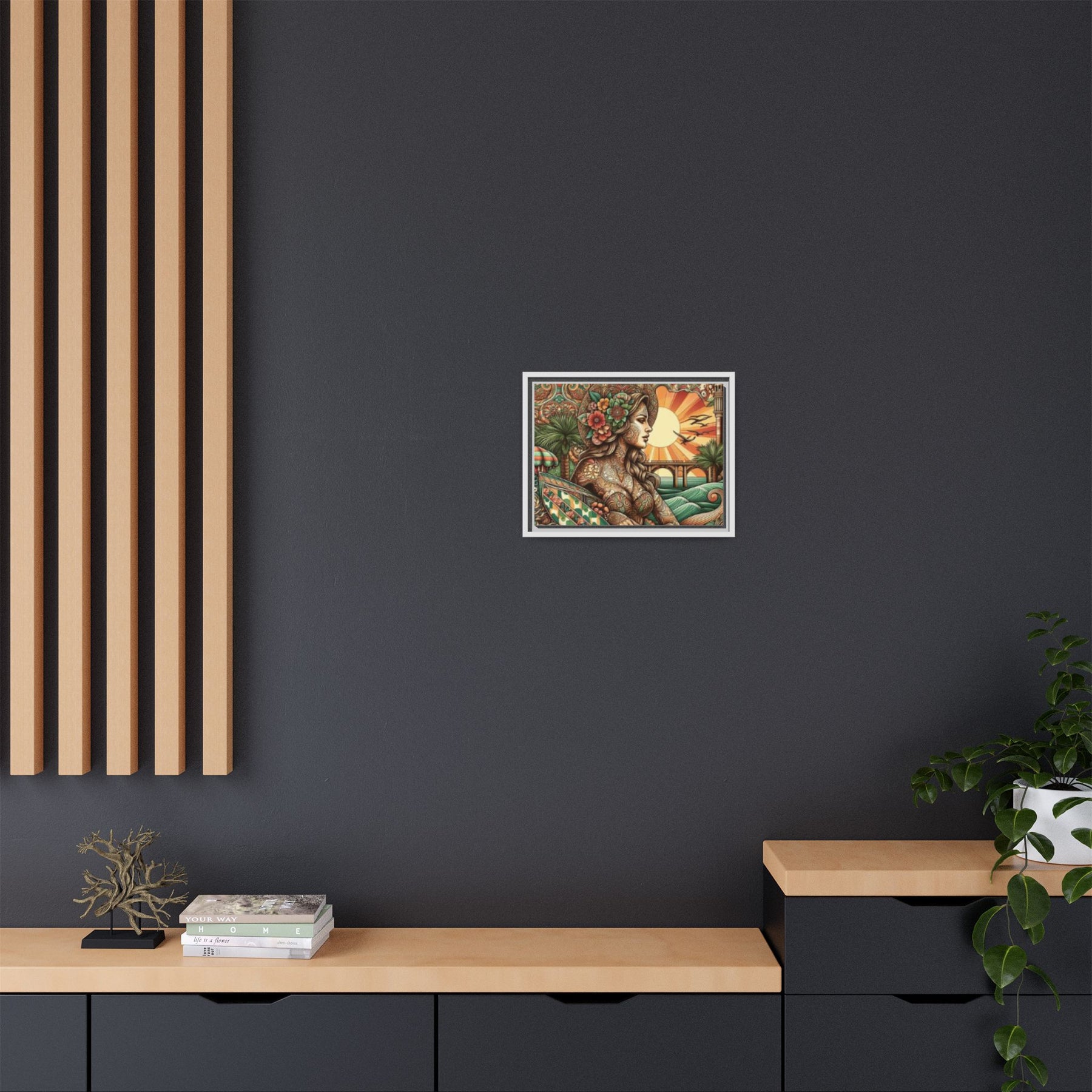 Elevate your living space with this stunning Matte Canvas, Framed artwork that radiates vibrant colors and intricate designs. Perfect for art enthusiasts and those looking to add a touch of personality to their home decor, this canvas art brings a refreshing atmosphere to any room. Ideal for celebrations like housewarmings and birthdays, as well as holidays such as Christmas and Easter. With its eco-friendly materials and thoughtful design, it appeals to the environmentally conscious buyer who values aesthetics and sustainability. Whether hung in the living room, bedroom, or office, it offers a captivating focal point that draws admiration.